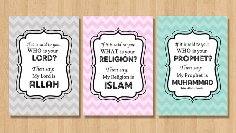 His soul is then restored to his body, two angels come to him, and making him sit up say to him, ‘Who is your Lord?’ He replies, ‘My Lord is God.’ They ask, ‘What is your religion?’ and he replies, ‘My religion is Islam.’ They ask, ‘Who is this man who was sent among you?’ and he replies, ‘He is God’s messenger.’ They ask, ‘What is your [source of] knowledge?’ and he replies, ‘I have read God’s Book, believed in it and declared it to be true.’