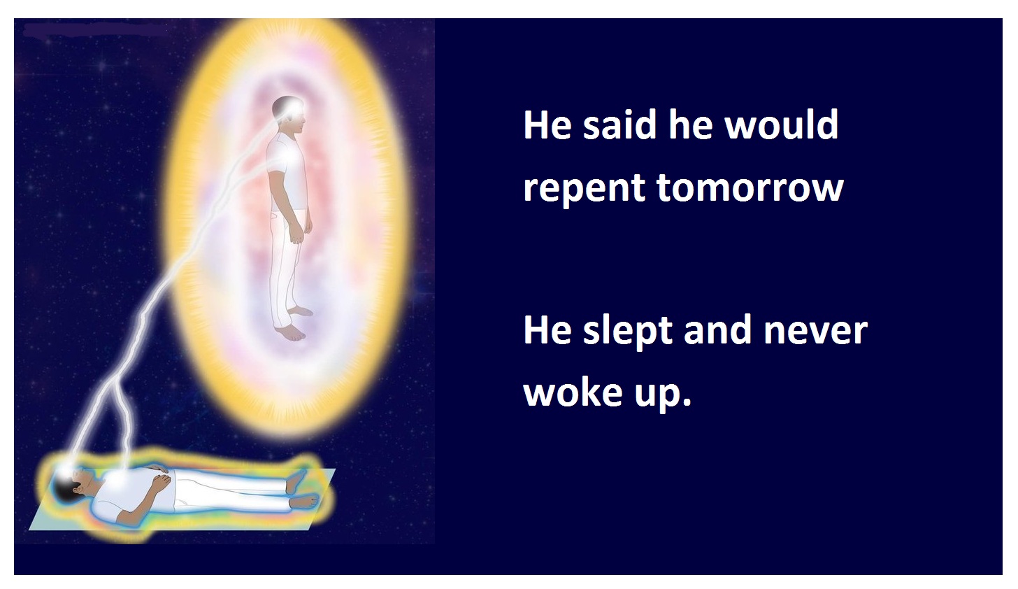 don't delay in repentance. Live each day as your last day because death will come unannounced.